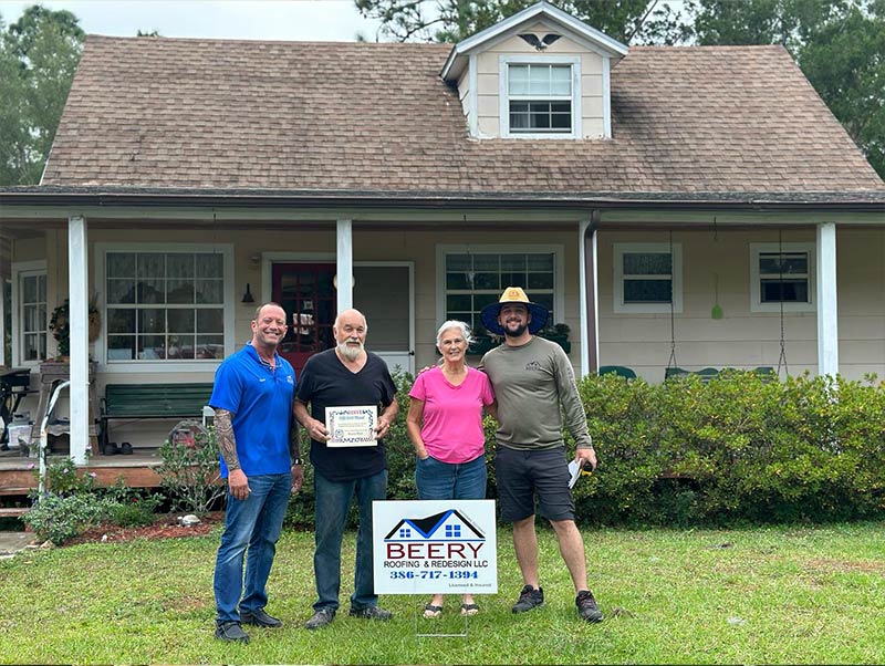 Beery Roofing & Redesign will be providing FREE permitting and FREE labor for this roof. Justin Gravell, owner of Phelps Aluminum will be providing FREE gutters to this lucky family. ABC Supply of Daytona Beach is supplying all the FREE materials. The Marks’ new roof is scheduled for Nov. 27, 2023.